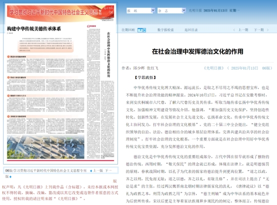 《在社会治理中发挥德治文化的作用》原文来源:太阳集团tyc9728【光明日报】https://epaper.gmw.cn/gmrb/html/2025-01/13/nw.D110000gmrb_20250113_2-06.htm
