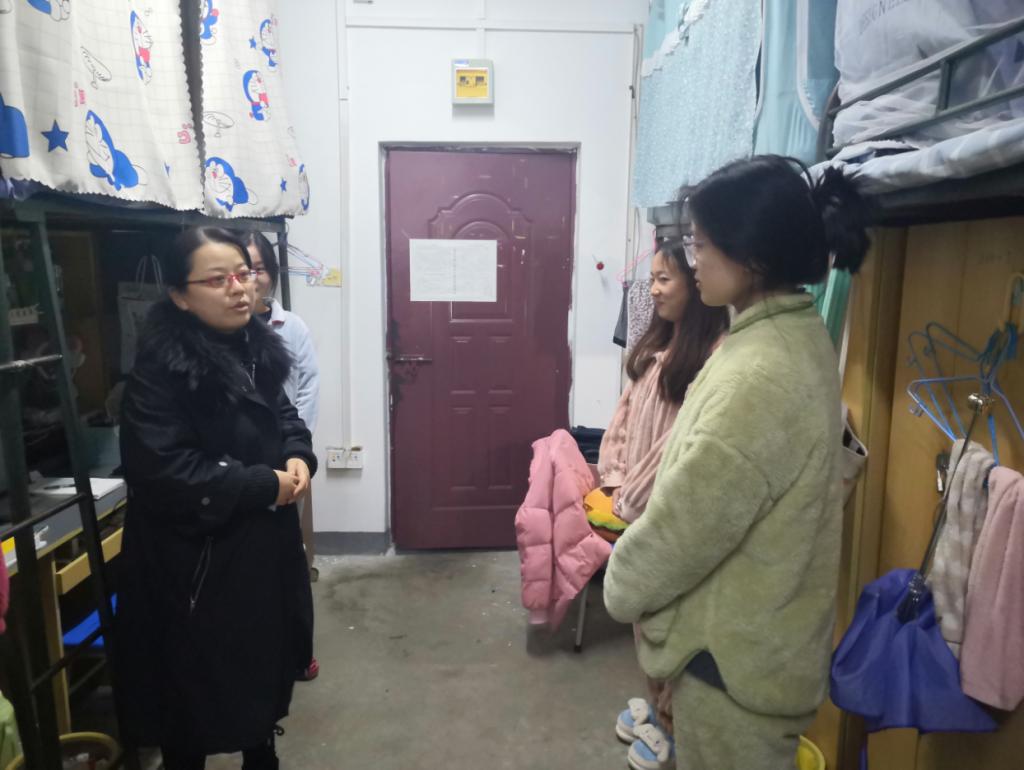 12月1日,公司党委副书记钱敏带领辅导员一行深入员工宿舍开展走访调研和安全卫生检查,了解员工思想生活状况,宣传讲解疫情防控有关规定,教育引导员工遵守公司教育管理规定,切实维护校园安全稳定。