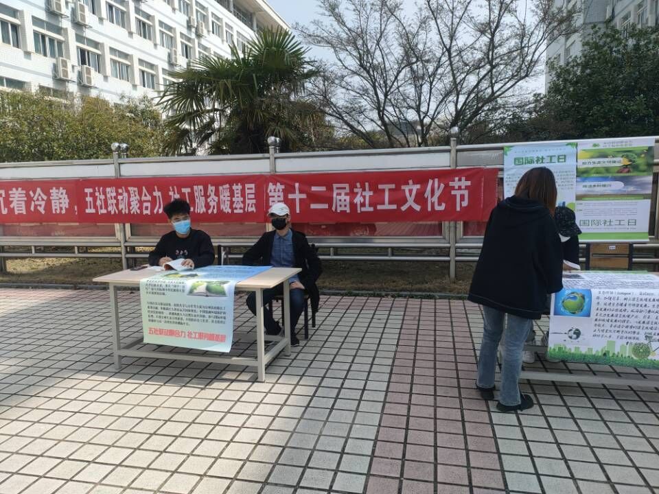 3月15日是“国际社工日”,太阳集团tyc9728在敬敷广场设摊摆点宣传社会日,为过往师生讲解乡村振兴及生态文明相关知识。“线下的宣传能让大家对于今年国际社工日的主题‘汇聚社工力量,共建生态社会新世界’以及社工专业有更深刻的认识。同时也能增强我们社工专业员工对于本专业的认同感和归属感。”活动负责人吴显说。