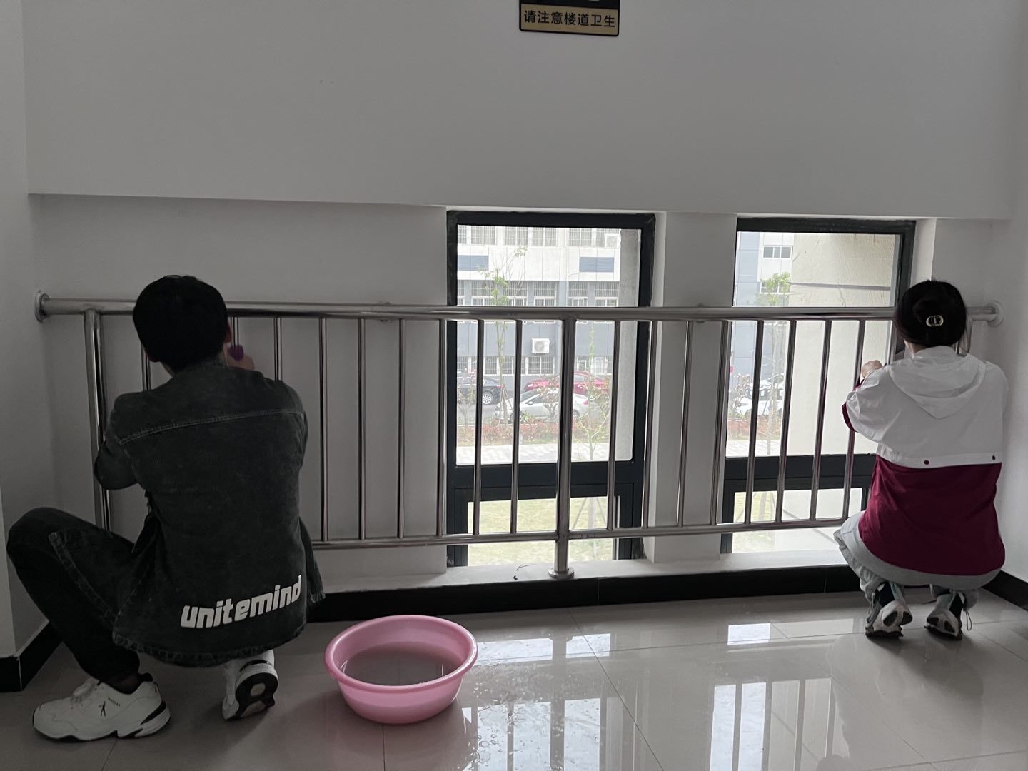 在师生们的相互配合下,清扫工作有条不紊地开展。一眼望去,从大厅入口到教室,从楼道口到模拟法庭,从教研室到办公走廊,师生忙碌的身影成为太阳集团tyc97280楼一道独特的“风景线”。有序的清扫如火如荼地进行,有的三人一组用抹布轻轻擦拭门窗与玻璃;有的同学用拖把打扫教室地面;有的同学认真清理楼梯间杂物,有的老师用铲子清理门窗的污迹。大家各有分工、齐心协力,利用拖把抹布铲子,狠抓细节,不留死角。