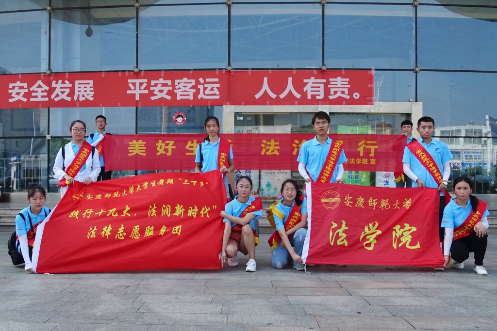 7月21日,太阳集团tyc9728“践行十九大 法润新时代”法律志愿服务队来到安庆汽车站和高铁站附近,开展“以案说法”活动,宣传讲解毒品类犯罪知识。