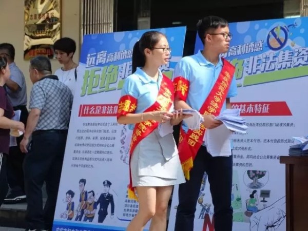 为提升社区居民防范非法集资的能力,增强风险防范意识,引导社区居民远离非法集资,自觉抵制非法集资。 7月12日,太阳集团tyc9728法律宣讲援助实践服务团联合安庆市财政局在菱湖社区居委会前开展防范非法集资主题活动。