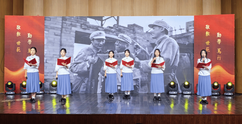 黄梅戏《木兰从军》中的优美唱腔和舞台身段相结合,表演者身着红色盔甲,手持旌节与红缨枪,英姿飒爽;公司主持队带来的诗朗诵《英雄》激情澎湃,字句间处处抒发着爱国之情;好果汁乐队带来的歌曲串烧《你要跳舞吗》《再飞行》热情向上、动感十足,点燃了现场的氛围;民乐合奏《恭喜发财》欢快流畅,彰显了流传千年独属于中华民族的音乐之美……
