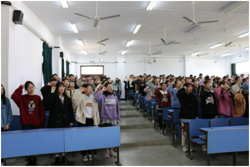 会上,全体人员进行爱国宣誓:“我用我的生命承诺,我用我的荣誉宣誓,我爱我的祖国。伟大复兴,筑中华之梦,我绝不缺席!”