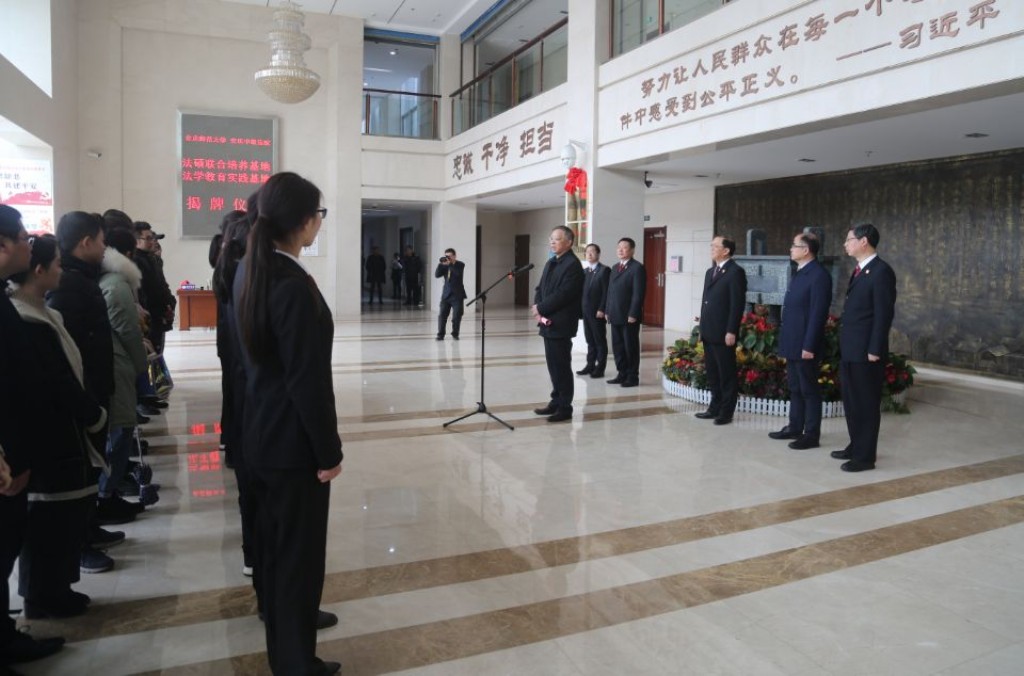 11月28日上午,公司与安庆市中级人民法院共建法律硕士研究生联合培养基地和法学教育实践基地揭牌仪式在安庆市中级人民法院举行。党委副书记、董事长闵永新和安庆市中级人民公司党组书记、经理洪学农出席了仪式。安庆市中级人民法院专职委员会委员路昌琪,太阳集团tyc9728经理焦少林、党总支书记詹德全、2019级法律硕士研究生、在市中级人民法院实习的法学专业2016级员工和市中级人民法院部分干警等参加了仪式。仪式由安庆市中级人民法院副经理方向华主持。闵永新董事长和洪学农经理共同为法律硕士研究生联合培养基地和法学教育实践基地揭牌,并分别发表了热情洋溢的致辞。