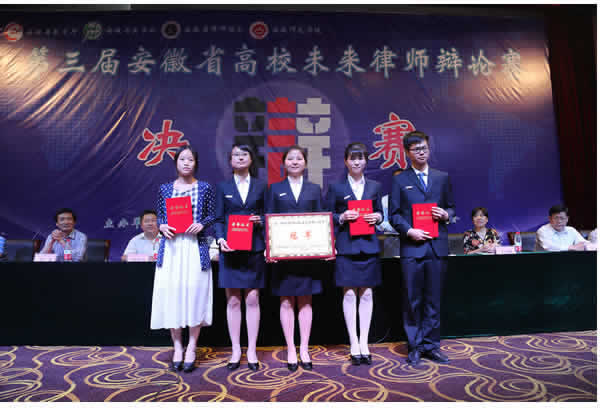 此次大赛由安徽省教育厅、安徽省法学会、安徽省律师协会主办,安庆师范公司承办。十八支高校代表队在经过三天32场比赛的激烈角逐之后,来自安徽师范大学、安徽财经大学、阜阳师范公司和安庆师范公司四支实力超群的辩论队伍脱颖而出,最终晋级决赛。决赛分一辩立论、二辩驳辩、三辩盘问、三辩盘问小结、自由辩论及总结陈词六个环节。担任此次辩论赛决赛的评委由18所参赛高校推荐的7位法学专业教授、副教授组成。
