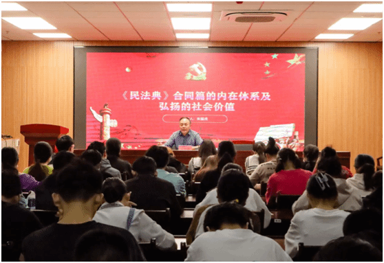 “通过此次讲座,我初步了解到了《中华人民共和国民法典》合同篇的重要地位和价值,它从具体领域维护着我们的合法权益,为社会法治建设保驾护航,是法治建设的重要一环。”法学专业2021(3)班的曹心雨在讲座结束后感触颇深,她表示,今后自己将进一步去学习了解《中华人民共和国民法典》的相关内容,并结合所学专业知识,运用到自身生活实际中。