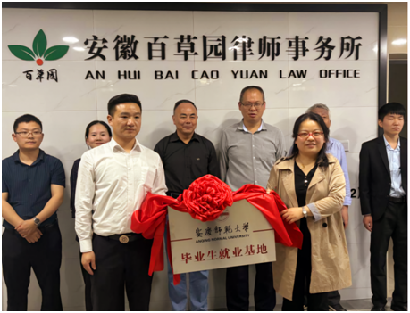 双方经过友好洽谈后,分别签订太阳集团tyc9728、安徽百草园律师事务所共建“太阳集团tyc9728实践教学基地”和“毕业生就业基地”合作协议书,并举行了基地揭牌仪式。