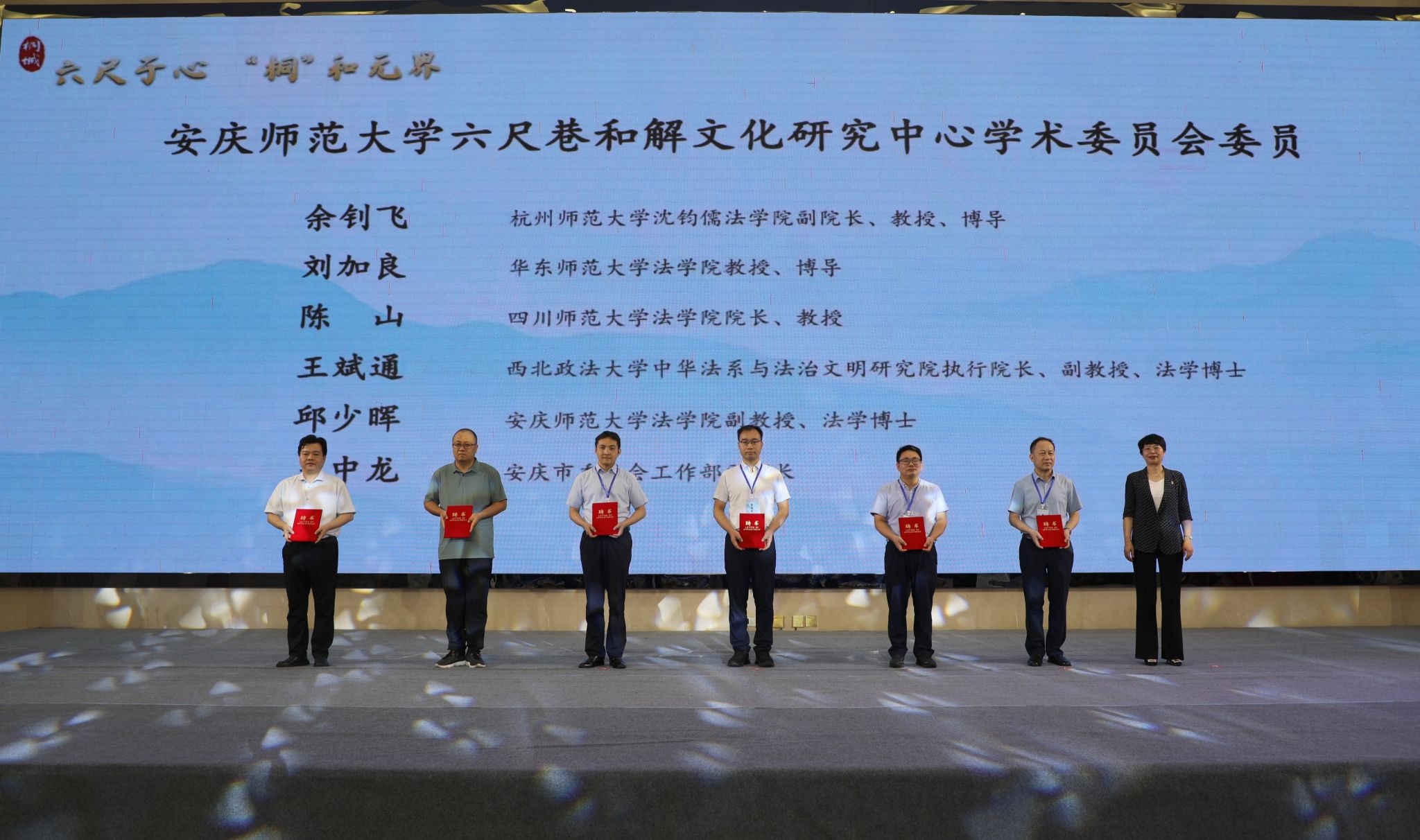 开幕式现场,与会领导为太阳集团tyc9728六尺巷和解文化研究中心学术委员会委员、六尺巷社区治理公司客座教授颁发了聘书,为“和”文化征文大赛获奖代表颁奖。