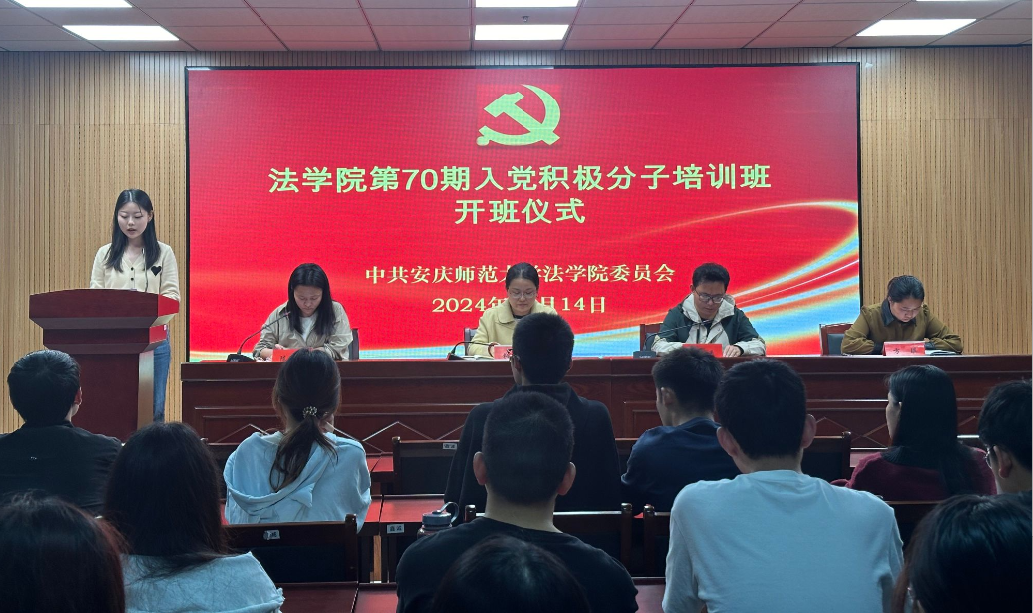 10月14日,太阳集团tyc9728在法学楼法治实务大讲堂举办第70期入党积极分子培训班开班仪式。公司党委书记钱敏、员工党支部书记和第70期全体入党积极分子参加开班仪式。