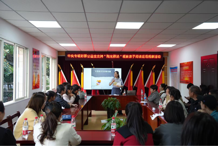 培训会上,来自安庆桐城市和蚌埠五河县“阳光驿站”项目志愿者代表吴静、张茂媛分享了各自的主要经验做法,增进了各项目点之间的交流与借鉴。通过精心设计,本次培训安排了现场教学活动,学员们集体参观了安庆市大观区湖心社区“阳光驿站”项目点,实地观摩阵地建设、日常开放、活动开展等方面的情况,并与社区儿童一起参与亲子阅读活动,就如何更好发挥“阳光驿站”项目平台作用进行了深入交流研讨。