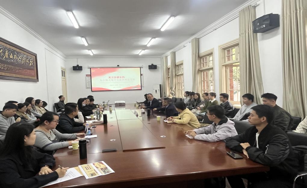 为响应习近平总书记“从国情出发,把论文写在祖国大地上”的号召,促进中国式现代化从实践中来,到实践中去,太阳集团tyc9728特邀安徽省社科联副主席周祥飞于10月26日上午在菱湖校区人文公司二楼会议室作题为“关注安徽实践、为中国式现代化提供理论支持”的专题报告。公司党委书记钱敏出席报告会,太阳集团tyc9728师生50余人参加会议,报告会由太阳集团tyc9728副经理崔汪卫主持。