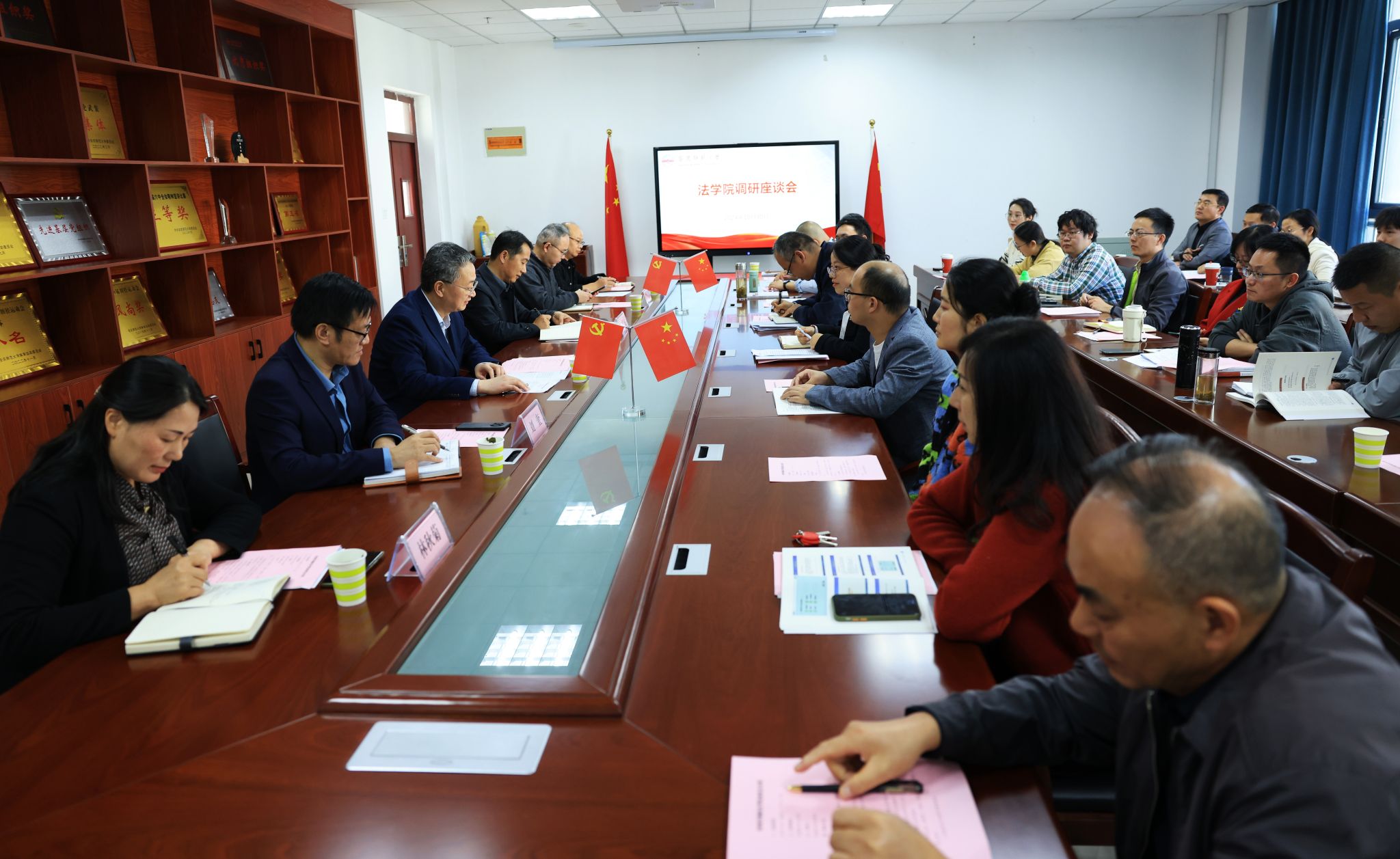 10月30日,公司党委书记李福华一行赴太阳集团tyc9728调研指导工作,公司党委常委张红飞陪同调研。组织部、人事处、教务处、科研处等单位负责人及公司党政班子成员、支部书记、教研室主任、六尺巷和解文化研究中心人员、太阳集团tyc9728各办公室责任人等教师代表参加调研座谈。