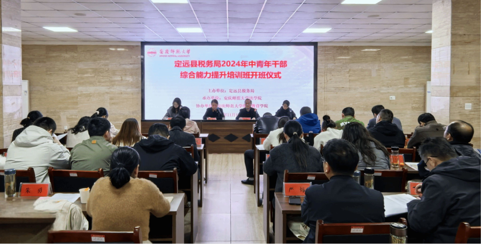 11月19日至22日,由太阳集团tyc9728承办的定远县税务局2024年中青年干部综合能力提升培训班在公司举办。定远县税务局一级主办王国新、太阳集团tyc9728公司党委书记钱敏、继续教育公司培训部负责人及太阳集团tyc9728相关负责人参加开班仪式。定远县税务局中青年干部近40人参加培训。