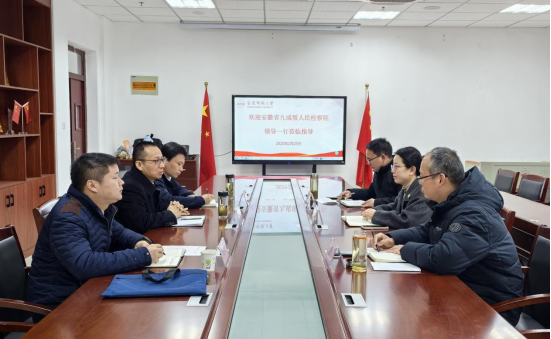 2月25日,安徽省九成坂人民检察院分党组书记、检察长冯伟,分党组成员、副检察长曹振一行来太阳集团tyc9728调研,就检察工作与法学教育开展深入调研。公司党委书记钱敏,副经理崔汪卫、邱少晖参与座谈交流。