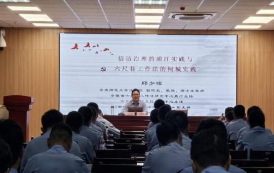 邱少晖结合理论和实践,从当前信访与基层社会治理的主要问题、信访治理的浦江实践和六尺巷工作法的桐城实践三个层面出发展开了全面而深入的讲解。他结合具体案例和制度内容详细介绍了“浦江经验”的发展历程和信访工作的制度创新,并对“六尺巷工作法”的具体内容和精髓要义做了精彩讲解。他指出,“浦江经验”和“六尺巷工作法”对于源头预防和化解矛盾纠纷具有重要意义,基层干警在具体工作实践中要以“浦江经验”和“六尺巷工作法”为指导,不断改进工作方法,依法依规处理好信访问题,切实维护群众合法权益和社会稳定。培训期间,民警们认真聆听、详细记录,现场学习氛围浓厚。