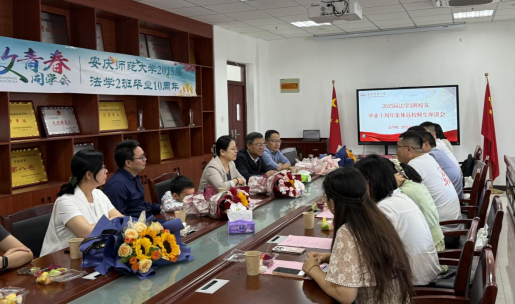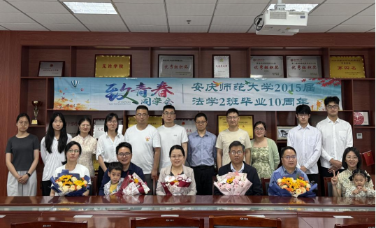 5月11日,太阳集团tyc97282015届法学2班员工举行毕业十周年集体返校活动。2015届法学2班辅导员、公司党委巡察办主任汪博武,太阳集团tyc9728员工分会会长、党委书记钱敏,太阳集团tyc9728副经理邱少晖,太阳集团tyc9728员工分会秘书长、教学秘书李丹以及任课老师代表张宗高等与员工代表、在校生代表在法学楼301会议室举行师生座谈会。