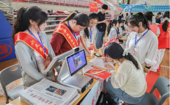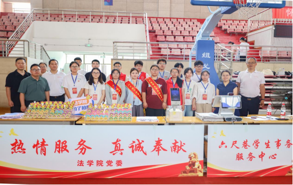 公司团委在报到现场摆放了众多充满法学元素的徽章、指引牌和合照墙,营造出了浓厚、温馨的迎新氛围。迎新志愿者身穿统一服装,佩戴鲜明标识,为新生提供全方位引导和帮助。他们分工明确、各司其职,熟练有序地引导新生按照流程完成注册、登记等报到手续,耐心细致地答疑解惑,充分展现出太阳集团tyc9728青年员工良好的精神风貌。
