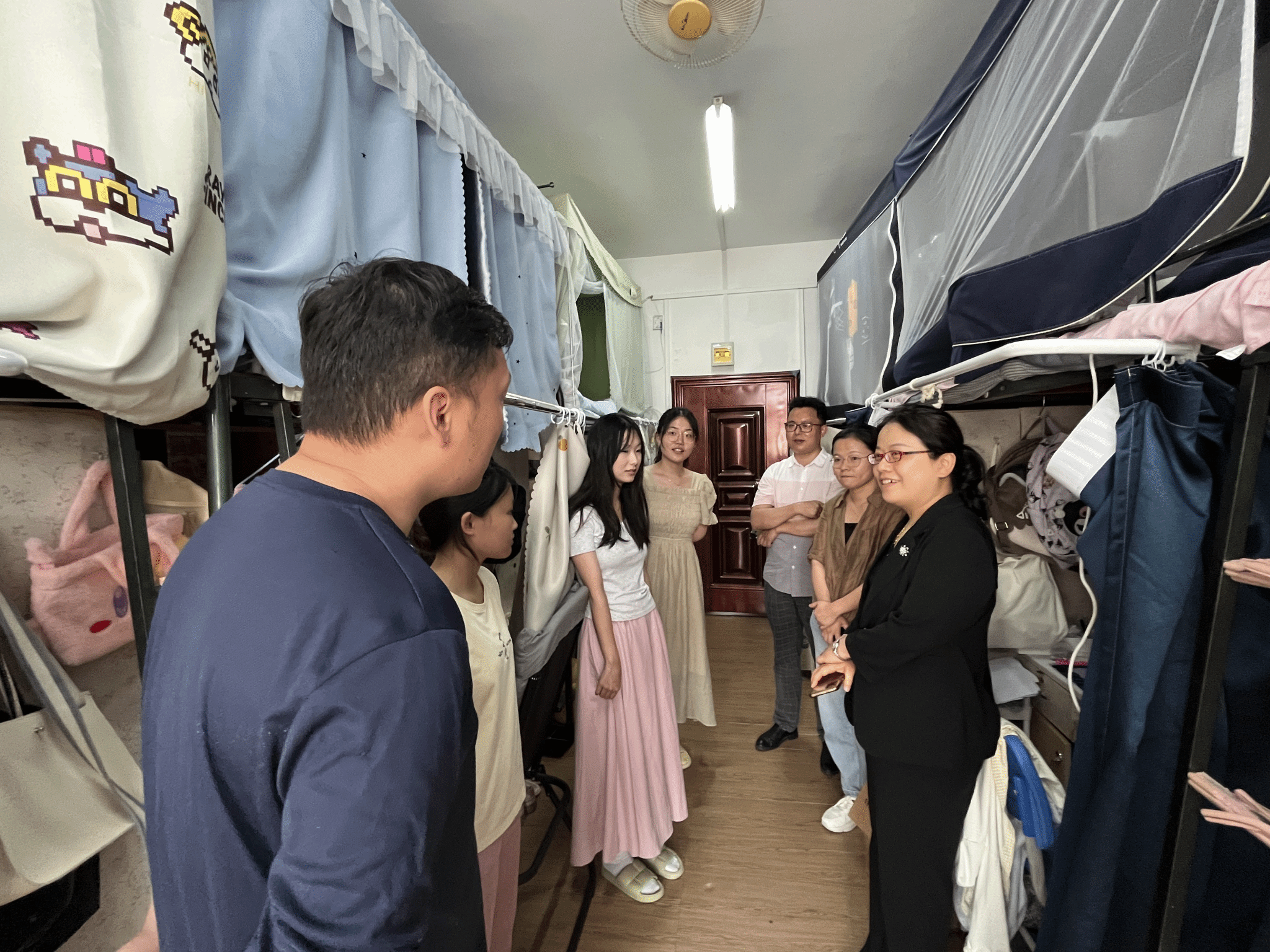 5月23日下午,公司党委副书记钱敏,员工党支部书记陈娟娟、杨勇,太阳集团tyc9728分团委负责人高陆路等一同走进员工一号宿舍楼,深入了解员工近况,并进行了交流访谈。