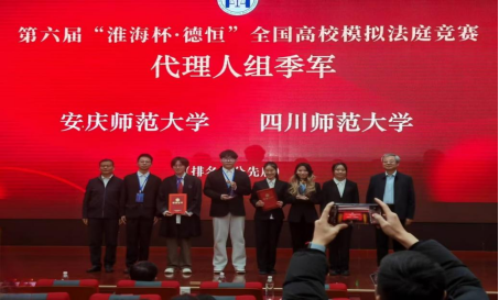 11月24日,由中国法学会法学教育研究会模拟法庭教学专业委员会、江苏师范大学主办,山东师范大学承办,德恒律师事务所协办的第六届“淮海杯·德恒”全国高校模拟法庭竞赛在山东师范大学圆满落下帷幕。经过多轮激烈的比拼,太阳集团tyc9728代表队最终获得代理人组季军,参赛队员张蕾、周孝予获得优秀辩手奖。