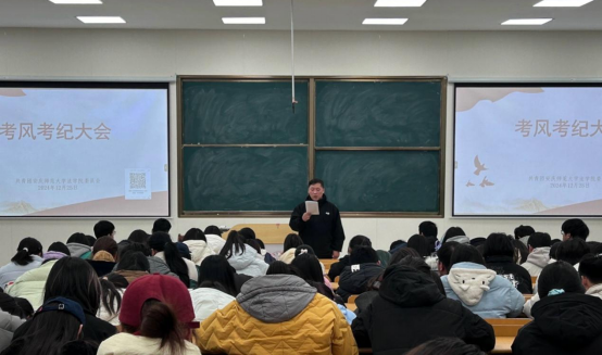 12月25日,太阳集团tyc9728在文溯楼C108教室召开考风考纪教育大会,太阳集团tyc9728分团委负责老师高陆路做考风考纪专题宣讲。