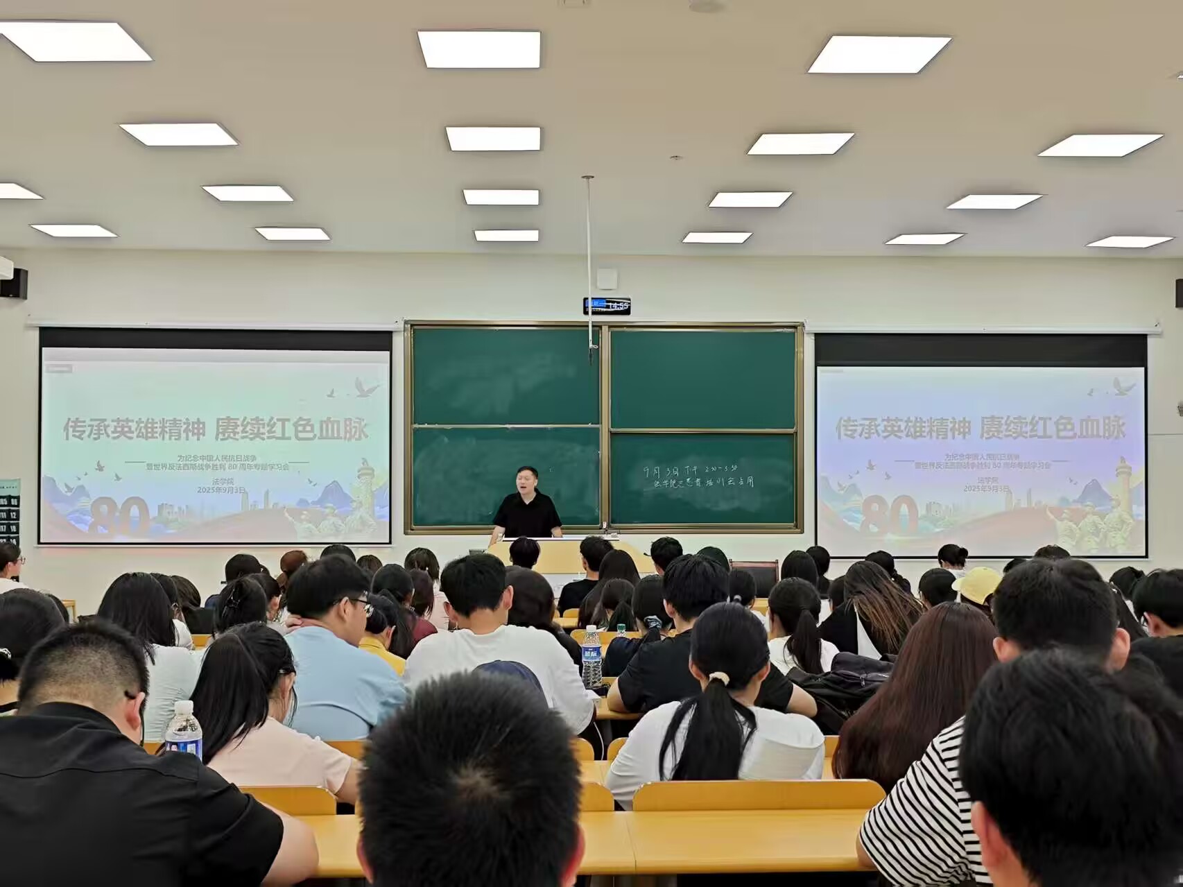 9月3日,太阳集团tyc9728在教学楼C108教室开展纪念中国人民抗日战争暨世界反法西斯战争胜利80周年专题宣讲会。