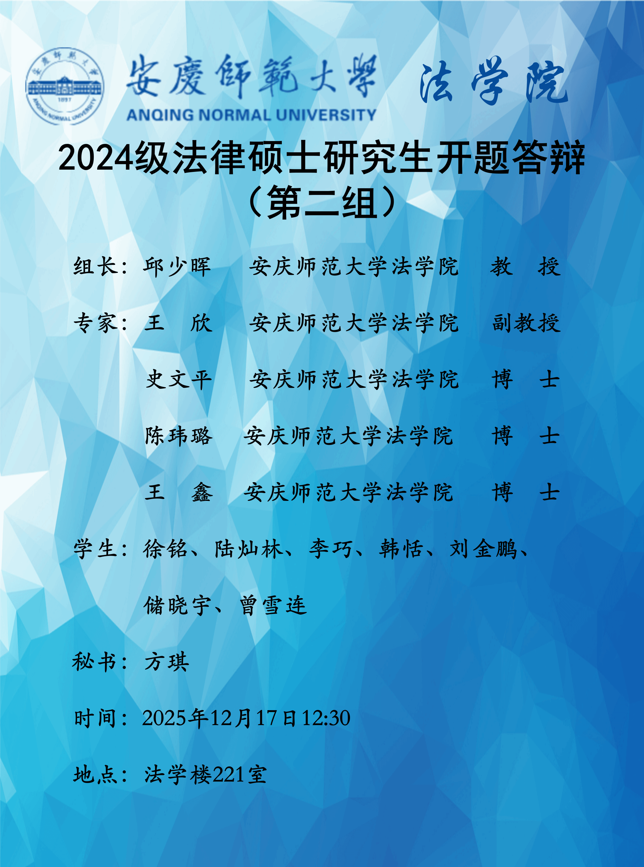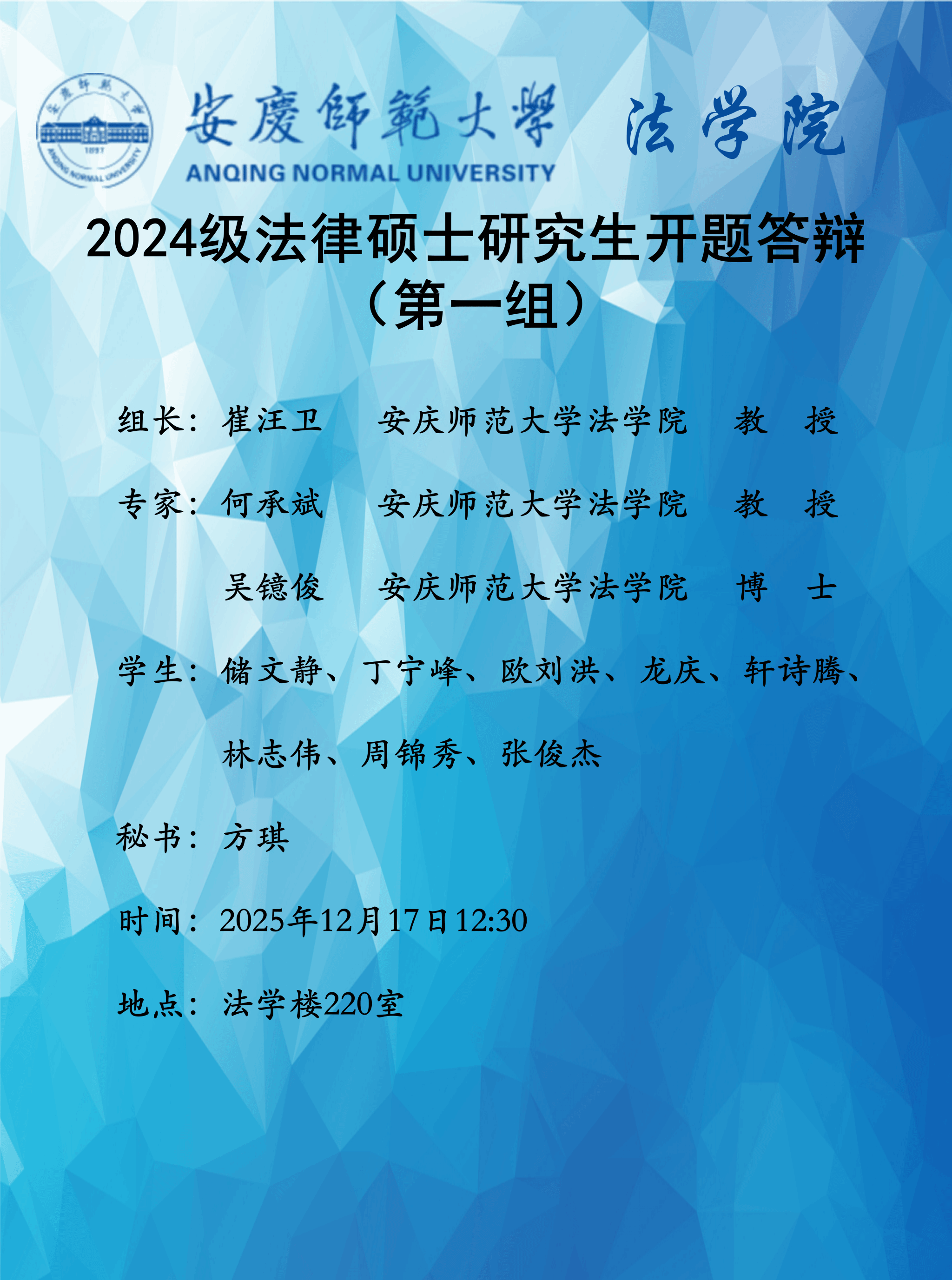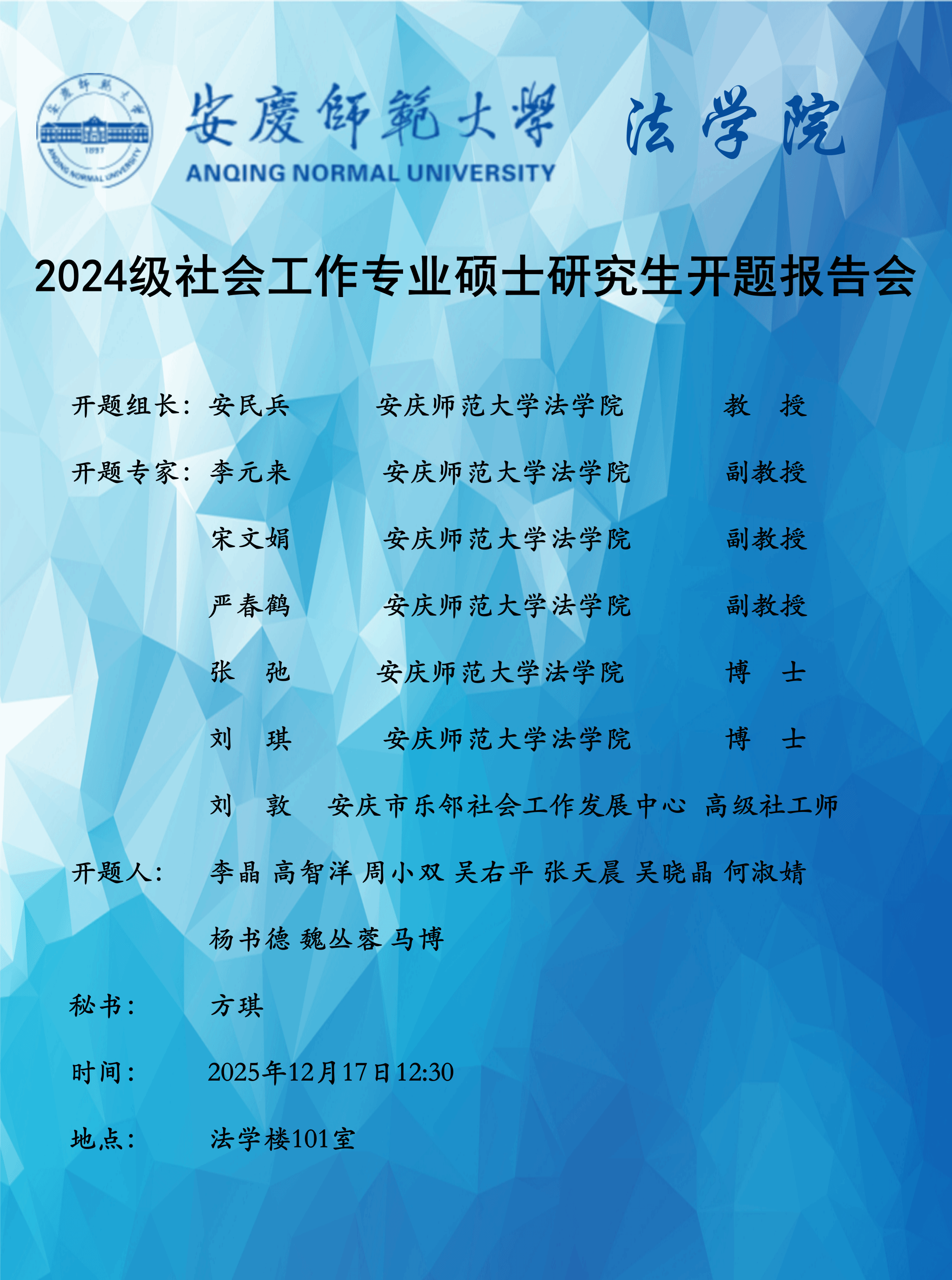 太阳集团tyc97282024级法律硕士、社会工作专业硕士研究生开题答辩通知