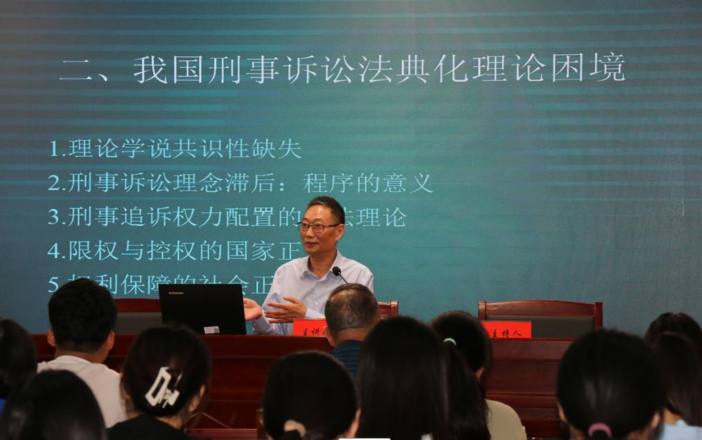 朱德宏教授的报告分为成文法与法典化、我国刑事诉讼法典化的理论困境、刑事诉讼法典化的实践经验缺失以及刑事诉讼法典化趋势等四个部分。他以判例法系和民法法系区别为切入点阐释了法典化的概念,并就理论和实践两个方面对我国刑事诉讼法典化的困境进行了深刻剖析。他围绕理论学说共识性缺失、刑事诉讼理念滞后、刑事追诉权力配置的宪法理论、权利保障的社会正义等方面分析了我国当前刑事诉讼法典化理论上的不足,接着从程序行为无效、当事人诉讼权利诉求、辩护人权利、审判程序功能和审级功能等方面分析了我国刑事诉讼法典化实践经验的缺失。朱教授最后归纳出刑事诉讼法典化的趋势。