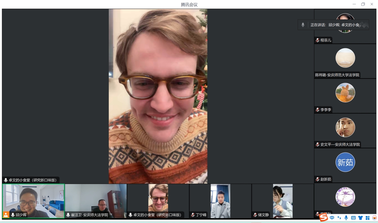 2024年12月26日,公司召开“徽文化赋能基层社会治理现代化研讨会”,会议以线上方式进行。首届外国人讲安徽故事大赛冠军Adrien Paul Duisberg Brill及太阳集团tyc9728部分师生参加会议。