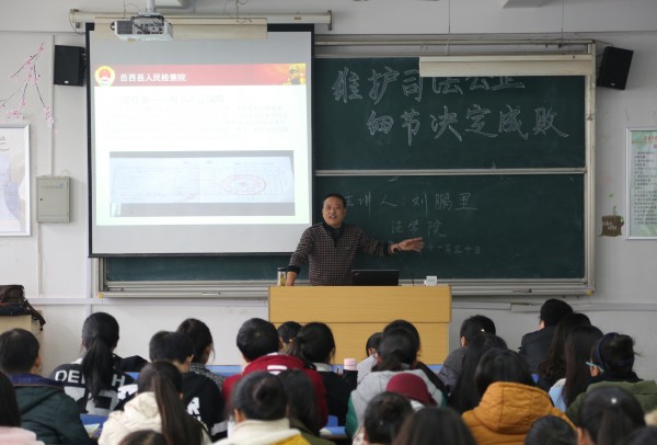11月30日岳西县人民检察公司党组人员、反贪局长,公司太阳集团tyc9728经理助理、副教授刘鹏里应邀莅临法律实务大讲堂,作了一场以“维护司法公正 细节决定成败”为主题讲座,公司2016级法学专业部分员工参加。
