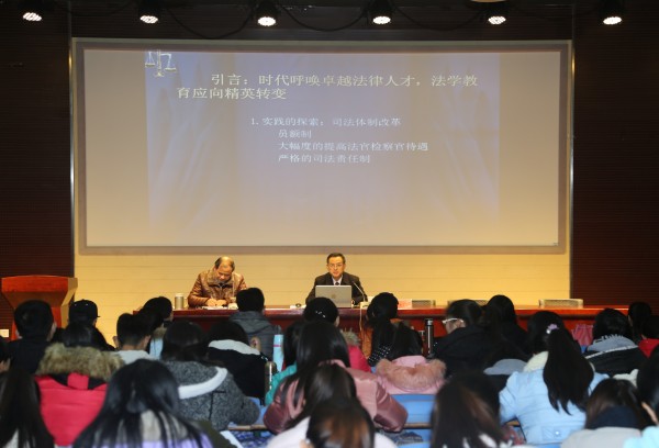 吴检察长从实践的探索、高层声音、现实困境和他山之石四个方面入手提出法学教育应向精英教育转变,从知识、能力、精神三个层面和守住底线,过好“权势观、金钱观和人情关”等方面,系统地论述了法律人应具备的基本素质。吴检察长对法律人的基本素养思考深入,体会深刻。从他的报告中,大家感受到法律人职责神圣,感悟到成为法律人特别是优秀法律人之路的艰辛。