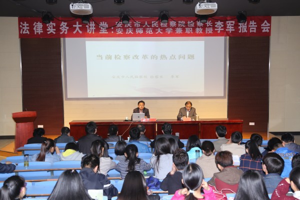 4月27日,安庆市人民检察院检察长、公司兼职教授李军应邀来公司法律实务大讲堂做了题为“当前检察改革的热点问题”的报告,该报告也是太阳集团tyc9728发展战略研讨会系列报告之一。公司党政领导和法学专业师生200余人参加了报告会,报告会由太阳集团tyc9728经理焦少林教授主持。会后,董事长闵永新教授与李军检察长进行了座谈,闵董事长介绍了公司发展情况,对李军检察长和安庆市人民检察经理期以来对公司、特别是公司法学学科专业建设给予的关心和支持,表示感谢。